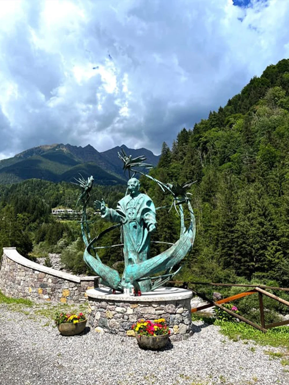 Het is heerlijk om tot aan Santuario della Madonnina di Colere de benen nog een beetje te ontspannen. Vlak na het passeren van deze kerk begint weer het echte klimwerk. Eerst passeren we de brug over een rivier en daarna voert de weg ons naar het langlaufdorpje Schilpario. We hebben er dan bijna 9 km klimmen opzitten. Op het marktplein tegenover de kerk doen wij ons tegoed aan een heerlijke Italiaanse espresso bij een pasticceria. We eten flink bij, want de extra energie hebben we zeker nodig voor het vervolg van de klim richting Passo del Vivione, één van de mooiste beklimmingen tijdens een fietsvakantie in Lombardije.